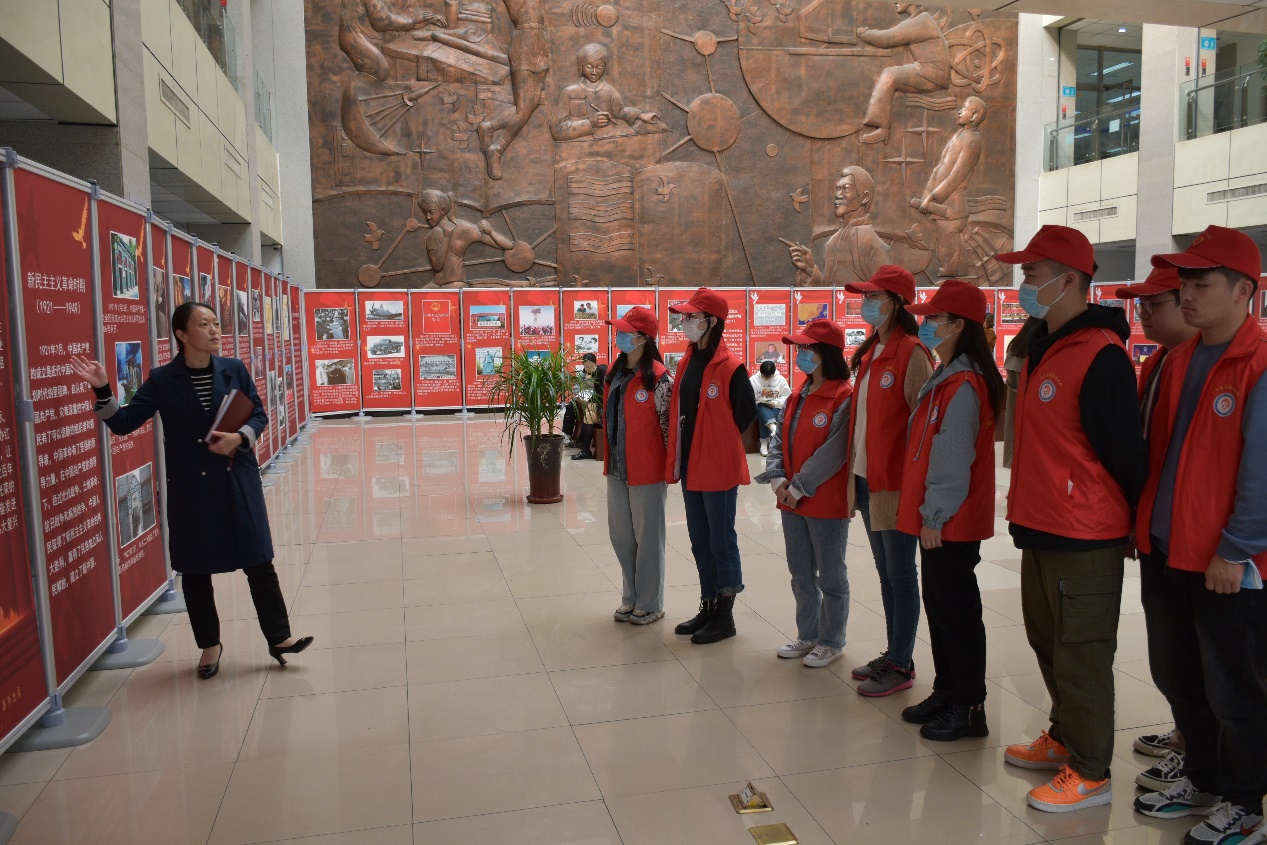 10月7日下午,公司党委副书记兼辅导员孟祥燕带领同学们重温了校图书馆的建党100周年图片展,并结合“七一”重要讲话内容对部分图片进行了重点讲解。在抗美援朝图片前,她通过分享观看影片《长津湖》的体会,剖析了志愿军敢于牺牲、无私奉献的精神。随后,在图书馆的党史阅览室里,孟祥燕为同学们讲解了“七一”重要讲话中的主要内容,鼓励同学们锤炼自身,增强志气、骨气和底气,在实践中掌握真正本领。团支部书记李瑞雪介绍了在校图书馆开展志愿服务活动的情况,并对全体团员发出倡议:学党史、强信念、办实事,将学党史的成果体现在专业的志愿服务活动中。最后,同学们纷纷发言,畅谈了自己近期学习“七一”重要讲话及党史的心得体会。