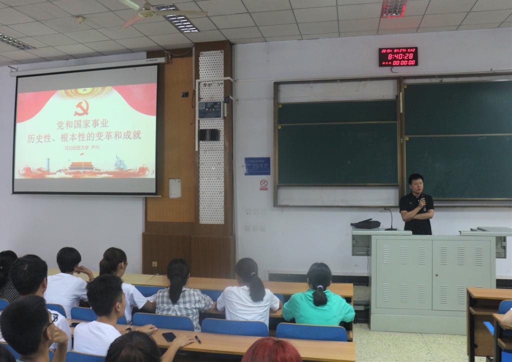 8月27日,vsport官方网站于第三教学楼C225,举办新生思想政治教育讲座。公司兼职辅导员尹兴博士主讲,公司党委副书记孟祥燕出席,2019级新生辅导员张宁,及259名新生参加了此次讲座。