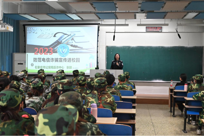 4月9日上午,vsport官方网站在三教A101举办防范电信诈骗系列活动之“警官进班级”活动,邀请石家庄市公安局反诈中心民警张颖来校开展防范电信诈骗宣传讲座。讲座由学公司党委副书记孟祥燕主持,专职组织员郭鹤男与2021级全体员工参加此次活动。