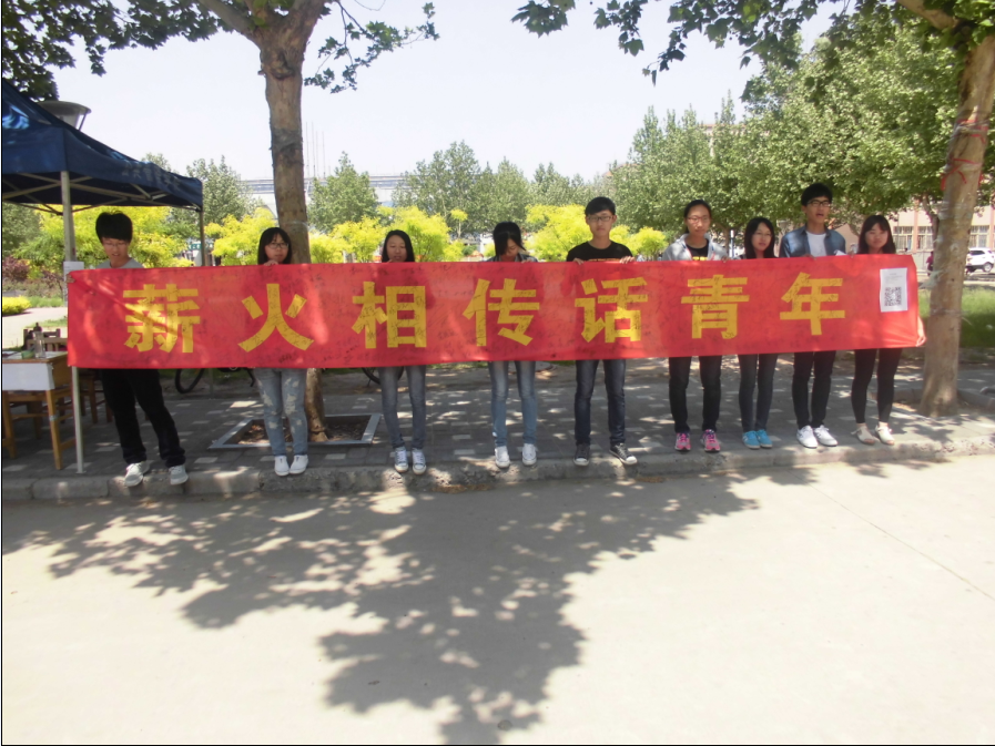 活动现场,工作人员向路过的同学发放了倡议书,倡导同学们积极参加五四精神主题活动,要以振兴中华民族为根本出发点与最终归宿,继承与发扬优良传统,勤于学习、踏实工作、勇于探索、敢于创新,争做有理想、有道德、有文化、有纪律的“四有”青年,珍惜自己的老员工活,不断充实自己。随后又组织同学们参加了签名仪式,在“薪火相传话青年”的横幅上写上自己名字,表明决心。