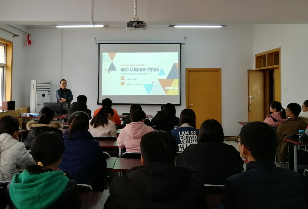 11月27日下午,vsport官方网站于二办501教室举办第三场就业创业服务月讲座。此次讲座由河北省老员工创业就业1855公益工程秘书长丁江涛主讲,2017级辅导员李斯及50余名员工聆听。