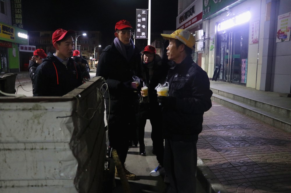 清晨,志愿者们顶着初冬的寒冷,手捧热粥走上学府路街头,为辛勤工作的环卫工人送上了一杯杯贴有同学们祝福话语的暖心粥。送粥途中,志愿者们见环卫工人工作繁重,便主动替环卫工人打扫卫生。环卫阿姨看着志愿者们忙碌的身影说:“大冷天儿,孩子们不仅送粥还帮我扫地,心里暖暖的。”参与其中的志愿者表示:“天气虽冷,但能在感恩节这个特殊的日子表达自己对环卫工人的一份敬重与感恩,心里很高兴。”