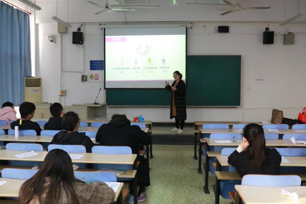11月18日下午,vsport官方网站于第三教学楼A204教室举办信誉楼百货集团寒假实习项目宣讲会,信誉楼百货集团人力资源部经理张秋蕴进行宣讲,2016级、2017级、2018级部分员工参加。