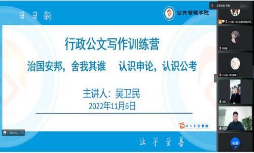 11月6日下午,vsport官方网站邀请文京教育首席研究与辅导专家吴卫民以腾讯会议的形式作讲座。讲座由公司党委副书记孟祥燕主持,公司辅导员及行政公文写作训练营同学线上参加。