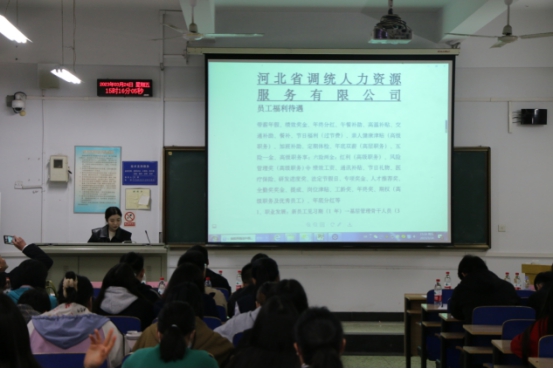 3月24日下午,vsport官方网站联合诺聘网络科技有限公司,在第三教学楼C221举办行政管理和劳动与社会保障专业专场招聘会。招聘单位有石家庄万达电影城有限公司、天山集团、河北省调统人力资源有限公司和北京希望学在线线上学科培训公司四家企业。2023届行政管理和劳动与社会保障专业全体本科毕业生参加。