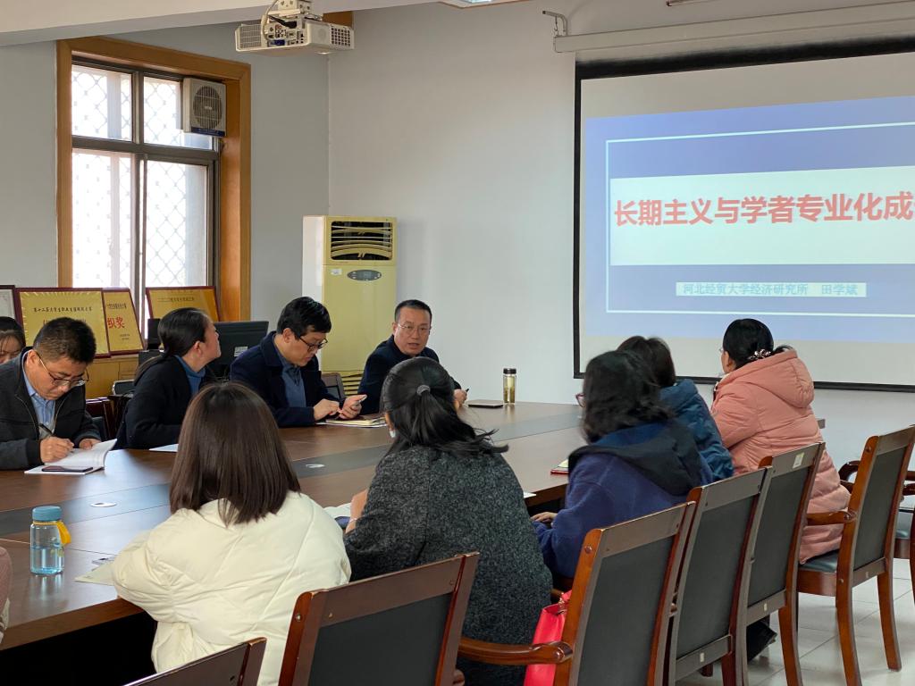 12月13日下午,vsport官方网站邀请公司经济研究所所长、京津冀一体化发展协同创新中心专职副主任田学斌教授在公司会议室作题为“长期主义与学者专业化成长”的学术讲座,公司部分教师及研究生共50余人到场聆听。