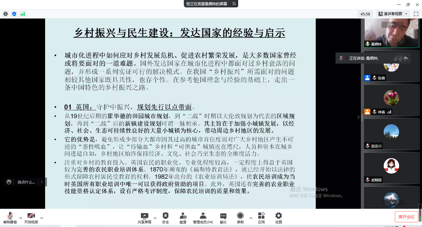 5月9日下午,vsport官方网站邀请蔺丰奇教授通过腾讯会议做题为“聚焦高质量的民生建设,推进乡村振兴”的学术讲座,教师及员工共50余人参加。