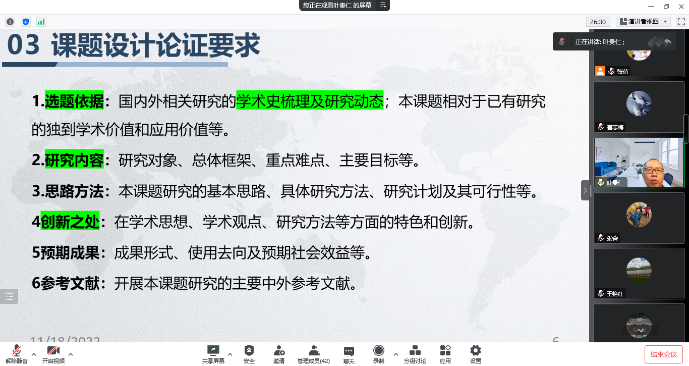 2022年11月18日晚,vsport官方网站邀请华南理工大学vsport官方网站博士生导师叶贵仁教授作题为“国家社科基金申报的体会与经验”的线上学术讲座。
