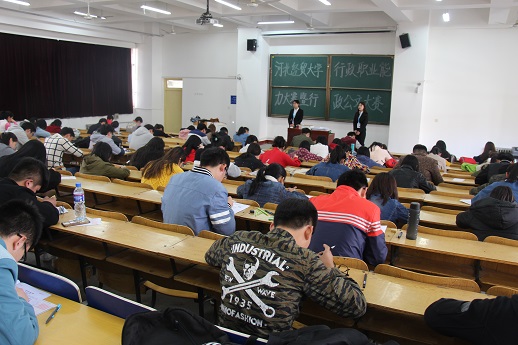 本届行政职业能力大赛分为:行政公文写作大赛、行政职业能力测验、综合面试三部分。此次行政公文写作大赛共有来自全校的300余名选手参加,比赛题型涉及概括提炼题、综合分析题、应用文写作、命题作文,全真模拟了国家公务员申论考试,考查了参赛选手的阅读理解能力、综合分析能力、提出与解决问题能力、深度思考能力。比赛现场气氛严肃,秩序井然;选手们认真思考,严谨答题。经过严格筛选,10名选手在比赛中脱颖而出。