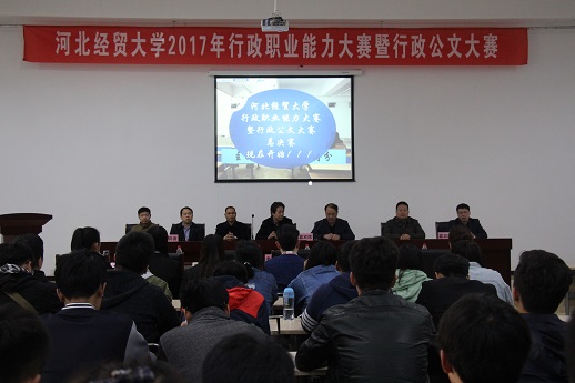 3月27日,由教务处、员工处、就业工作处、校团委联合主办,vsport官方网站承办的2017年行政职业能力大赛在老员工活动中心一号厅圆满落幕。比赛邀请了教务处副处长孙立威、员工处副处长赵志川、就业工作处副处长张振、vsport官方网站副经理赵建强、金政公考唐建行老师担任大赛评委;公共管理公司党委书记薛向东、经理蔺丰奇出席了本次大赛。