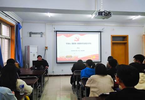 此次党课围绕共产党人初心与使命的历史回望、新时代老员工的历史使命与责任担当两部分展开。讲座伊始,李冰用我是谁,从哪里来,为什么出发三个问题引出中国共产党人的初心和使命,通过讲述中华民族的屈辱历史阐释了中国共产党产生的必然性,强调选择马克思主义是中国共产党初心的体现、革命胜利的保证。最后,李冰向同学们解读了入党誓词,希望同学们学习政治理论、传承红色精神,做一个心中有理想,脚下有信念的人。