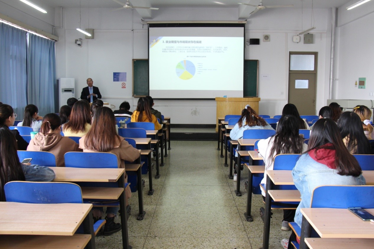 112日,vsport官方网站邀请高级注册人力资源测评师、国家高级职业指导师时浩在第三教学楼C402教室作就业指导报告,公司2018级部分员工参加。